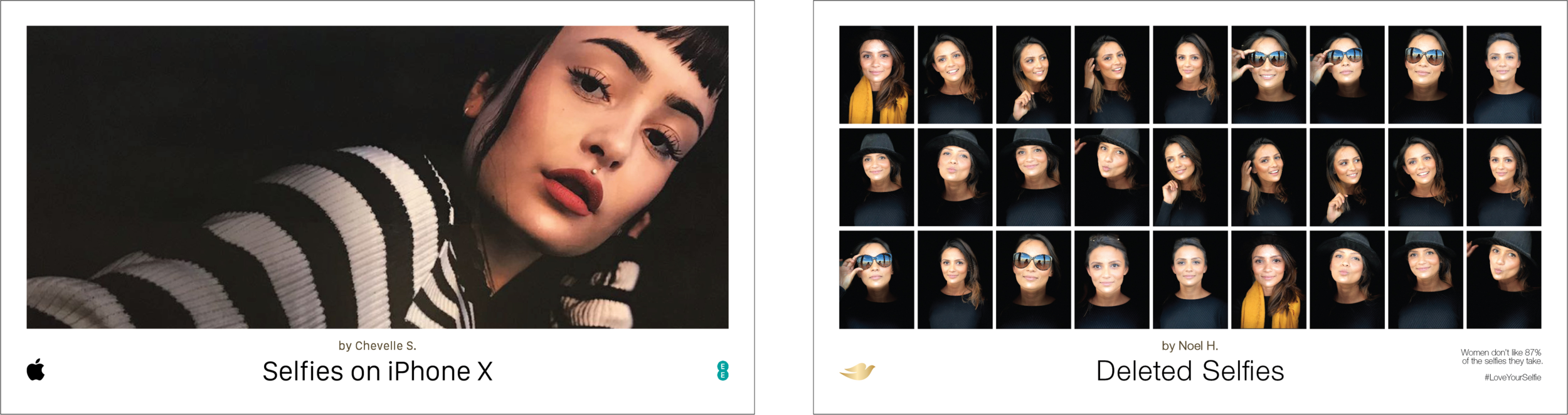 But studies tell us that women don’t like 87% of their selfies. We wanted to show the rejects behind these seemingly perfect selfies, to encourage women to see the beauty in every photo they take, not just the one everybody sees.